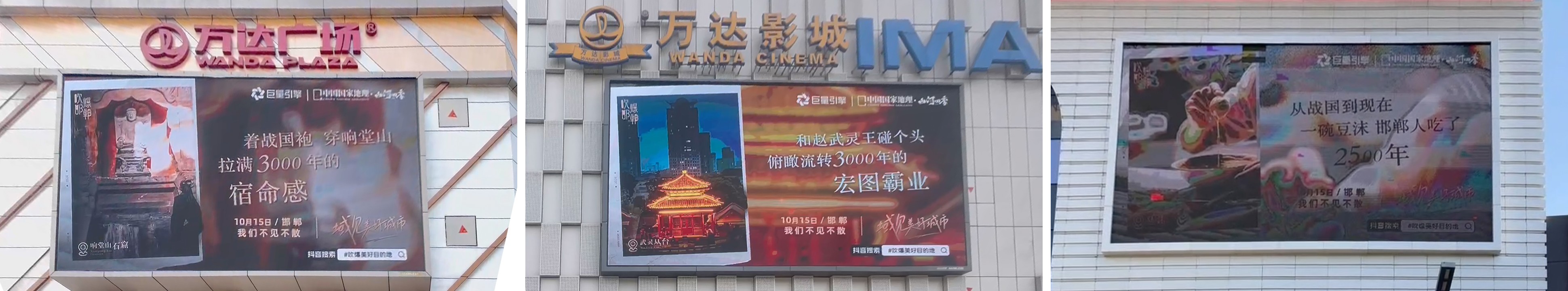 不僅如此,巨量引擎更聯(lián)合中國國家地理•山河四季,在各地萬達大屏上演了一場邯鄲城市大片攝影展,讓邯鄲的寶藏美景通過鏡頭、照片走出去。