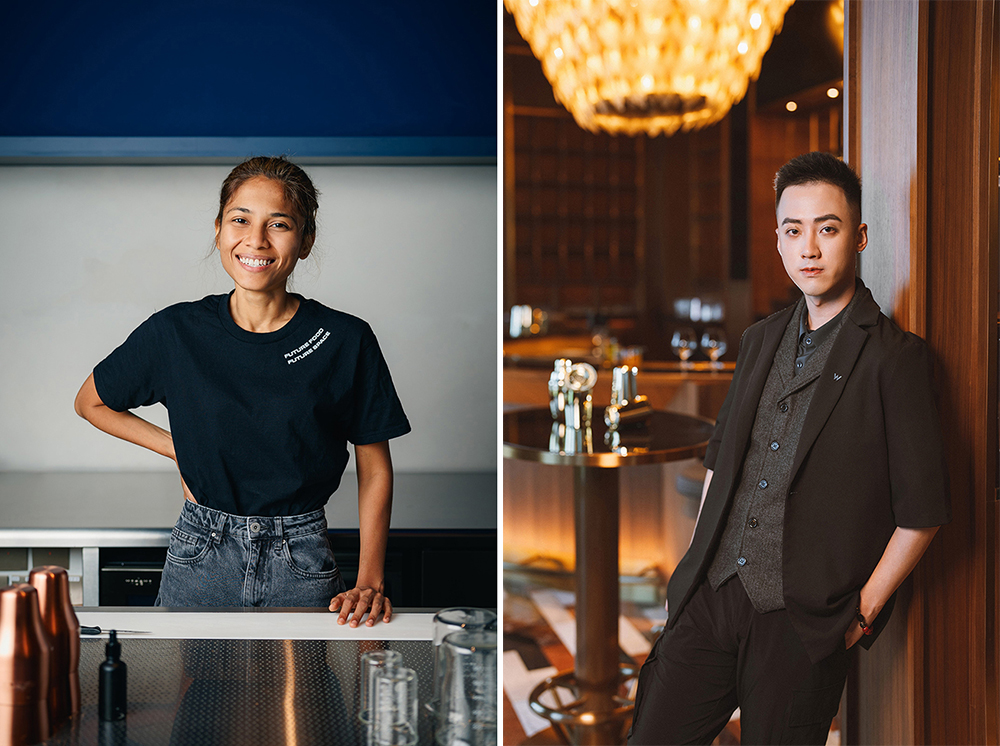 Sasha (左) 是Fura 的合伙人及調(diào)酒師,她一向追尋以創(chuàng)新的方式融合各種食材,制作出風(fēng)味獨(dú)特又環(huán)保的飲品。 澳門新濠影匯W酒店首席調(diào)酒師Samio (右) 獨(dú)具匠心,致力于以不同構(gòu)思設(shè)計(jì)出令人驚嘆的作品,期望每一杯飲品都能為賓客帶來難忘的體驗(yàn)。