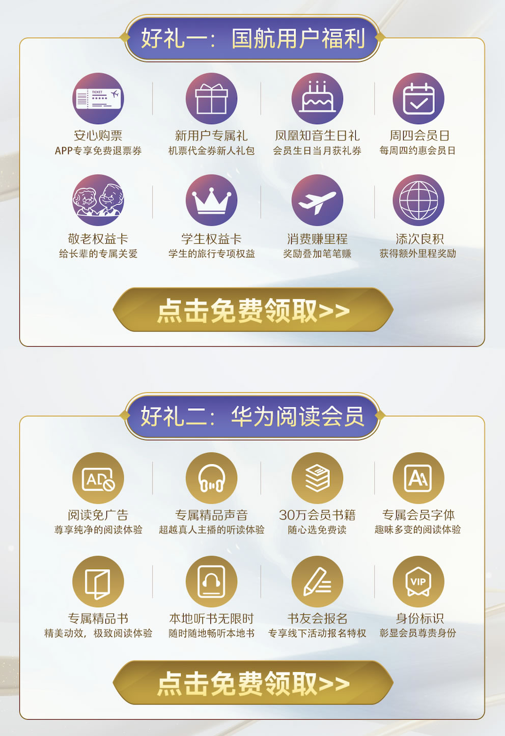 本次活動(dòng)中,國(guó)航為用戶提供了退票券、生日禮、敬老權(quán)益卡、學(xué)生權(quán)益、新人專屬禮券等一系列大禮包。華為閱讀則為國(guó)航的用戶提供了30天閱讀會(huì)員的專屬福利!領(lǐng)取后可以享受超百家知名出版社30萬(wàn)冊(cè)版權(quán)會(huì)員書(shū)籍免費(fèi)讀,不僅可以免費(fèi)使用專屬會(huì)員字體閱讀,還能獲得免廣告的純凈體驗(yàn)。同時(shí),喜愛(ài)聽(tīng)書(shū)的用戶還可以使用專屬的精品聲音聽(tīng)書(shū),本地聽(tīng)書(shū)無(wú)限時(shí),加入書(shū)架的書(shū)籍還內(nèi)置了專屬精品聲音,給用戶帶來(lái)超越真人主播的聽(tīng)讀體驗(yàn)。華為閱讀還會(huì)定期組織線下書(shū)友會(huì),領(lǐng)取會(huì)員后可專享書(shū)友會(huì)優(yōu)先報(bào)名特權(quán)!