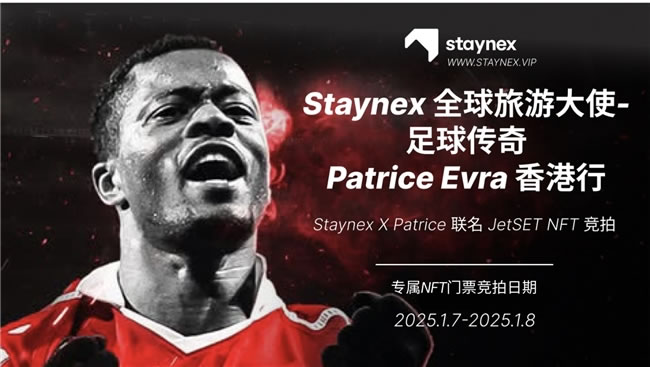 此外,活動現場將見證 STAYNEX 與 Patrice Evra 的簽約儀式,并獲取精美禮品、幸運抽獎和獨家優(yōu)惠。具體相關權益或競拍鏈接以及競拍教程請查看STAYNEX.VIP 官方說明。