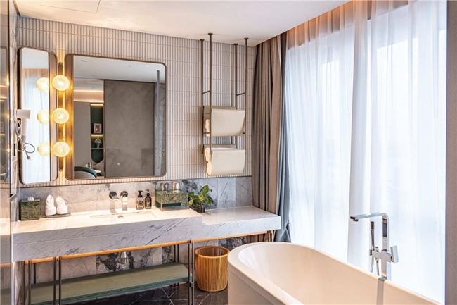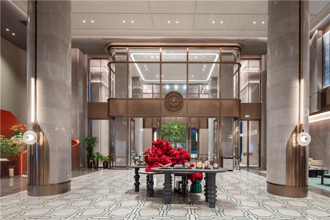 酒店由法國(guó)設(shè)計(jì)師Jave操刀設(shè)計(jì),以"楚韻新譯"為理念,巧妙融合現(xiàn)代奢華元素與荊楚文化傳統(tǒng)特色,打造出既具時(shí)代風(fēng)尚又飽含文化底蘊(yùn)的獨(dú)特空間。大堂主體采用大面積玻璃幕墻,搭配莫蘭迪紅綠配色點(diǎn)綴,白天,陽光透過玻璃傾灑,大堂內(nèi)溫馨明亮,宛如璀璨水晶宮殿;夜晚,借助精妙燈光設(shè)計(jì),呈現(xiàn)出迷人光影效果,成為城市夜色中耀眼的明珠。