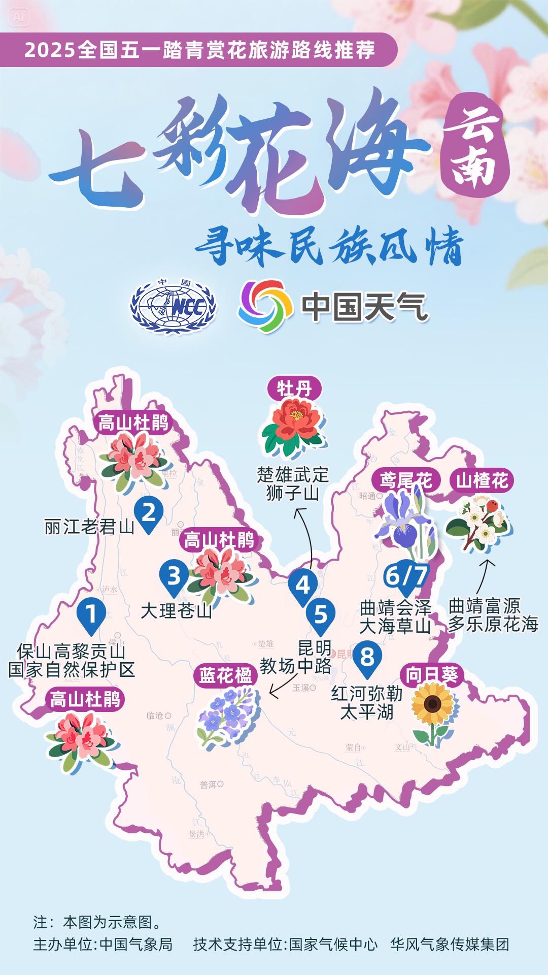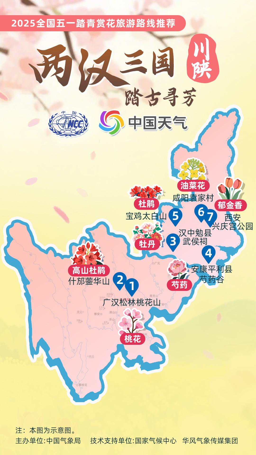 正值杏花、杜鵑花等春花盛放時節(jié),中國氣象局針對全國景點主要花品,對其生長積溫和物候期進(jìn)行關(guān)聯(lián)性分析,建立多種花品的最佳觀賞期預(yù)報模型,提供賞花預(yù)報服務(wù)。在此基礎(chǔ)上,國家氣候中心、華風(fēng)氣象傳媒集團(tuán)依據(jù)歷史氣候資料和今年氣候預(yù)測,參考花期模型預(yù)報結(jié)果,結(jié)合區(qū)域地理分布、小氣候特征和旅游景點等信息,推出4月下旬至5月上旬適宜踏青賞花的線路。