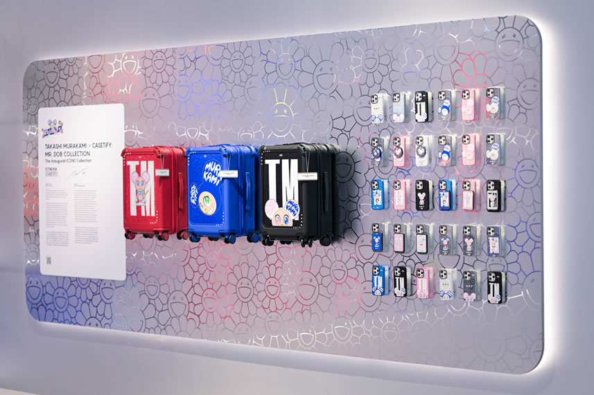 快閃空間特別設置 CASETiFY x 村上隆聯(lián)名系列展示墻,超限量發(fā)售 MR.DOB 主題聯(lián)名彈韌防摔21寸登機旅行箱,一起步入村上隆的奇妙世界。