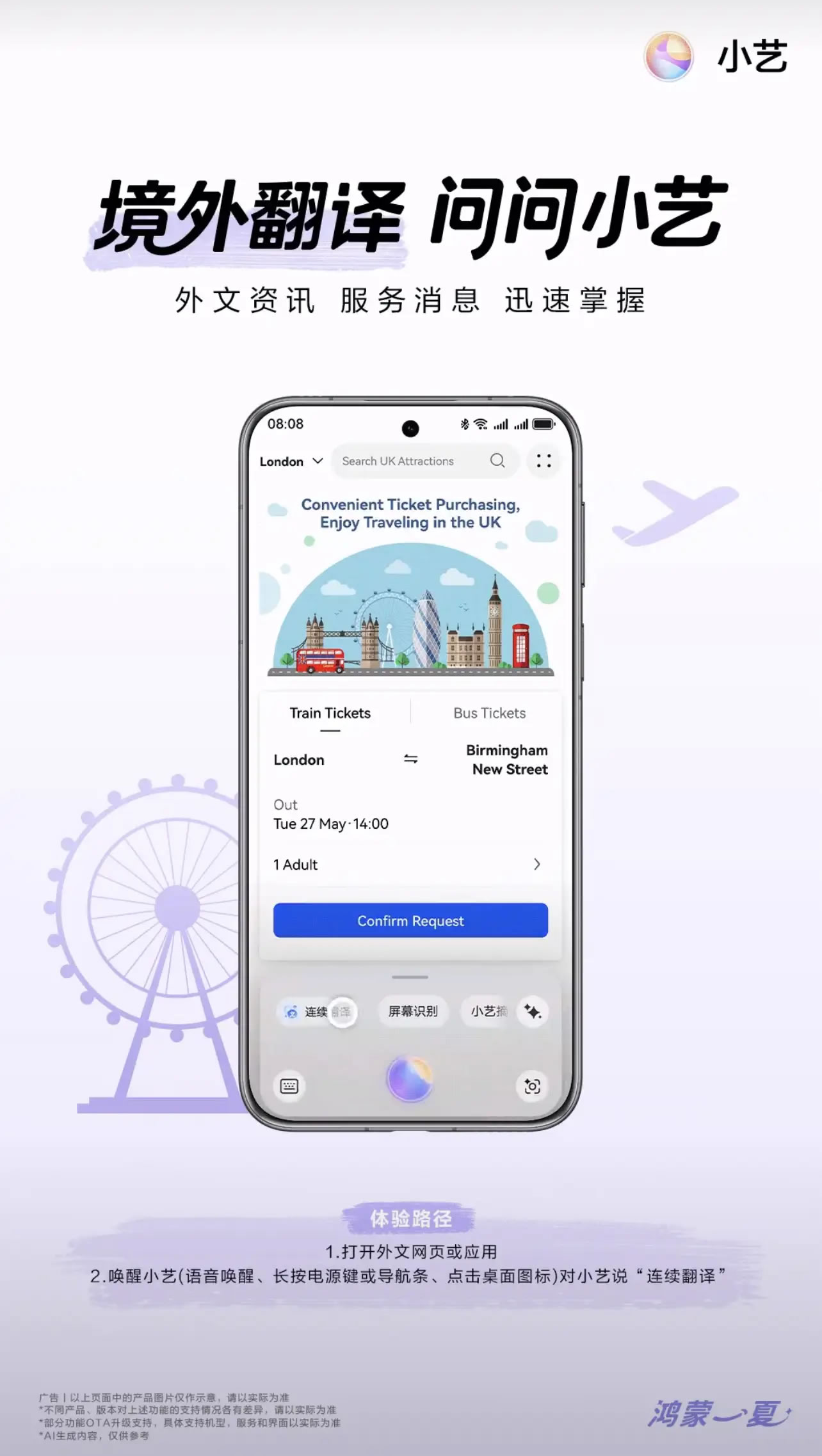 出境游用小藝翻譯,打破語(yǔ)言障礙
