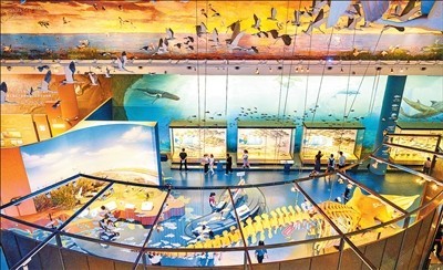10月2日,游客來到位于江蘇鹽城的黃海濕地博物館參觀游覽。胡志超攝(影像中國(guó))
