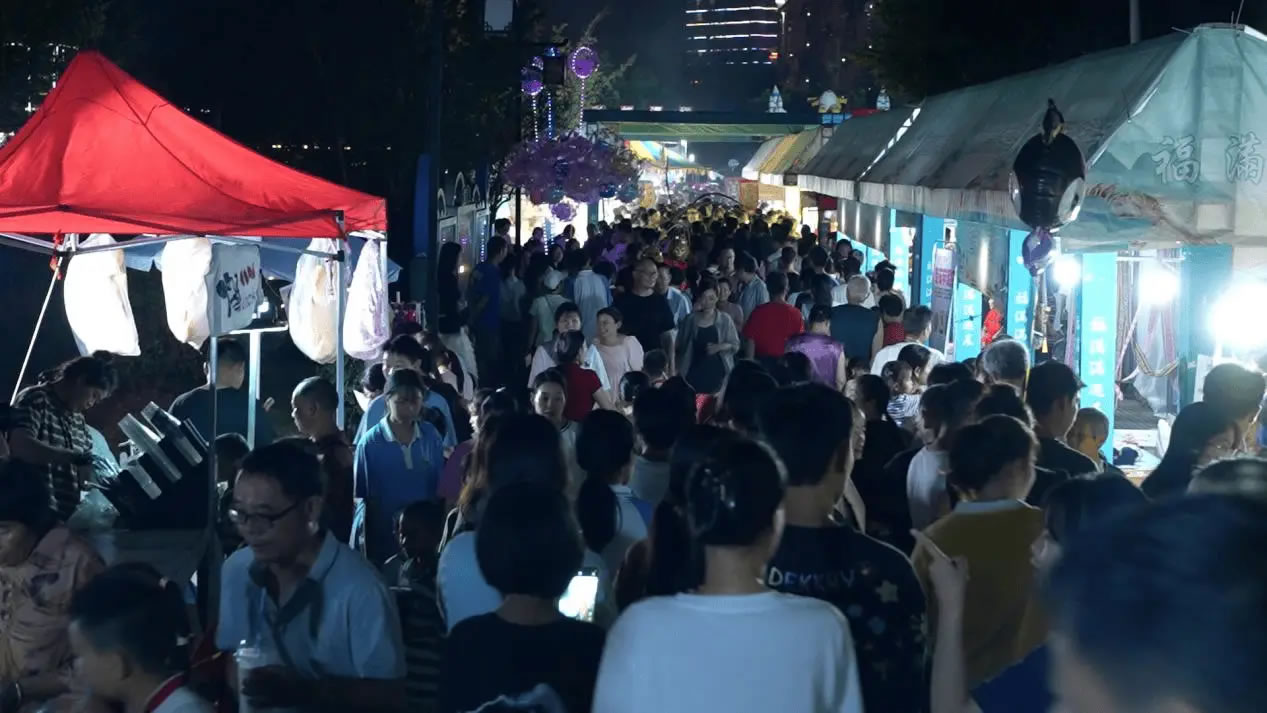 活動(dòng)現(xiàn)場(chǎng),產(chǎn)品展銷、非遺展演、親子游樂、特色美食四大板塊同步開啟,非遺火壺、浪漫銀河冷焰瀑布秀、非遺打鐵花等輪番上演。活動(dòng)首晚便吸引市民游客超5000人次,叫賣聲、音樂聲交織,摩肩接踵的人群中涌動(dòng)著消費(fèi)熱潮。
