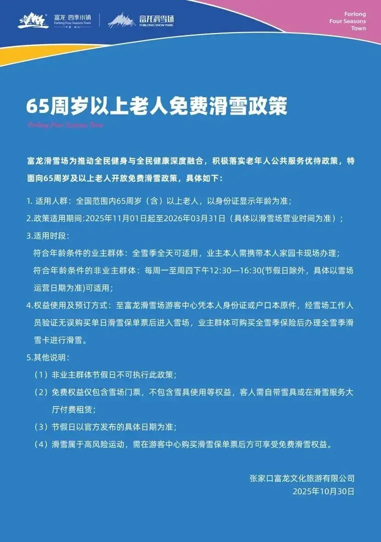 記者查詢發(fā)現(xiàn),張家口其他滑雪場也有推出針對老年群體的優(yōu)惠政策,包括滑雪半價或免費。