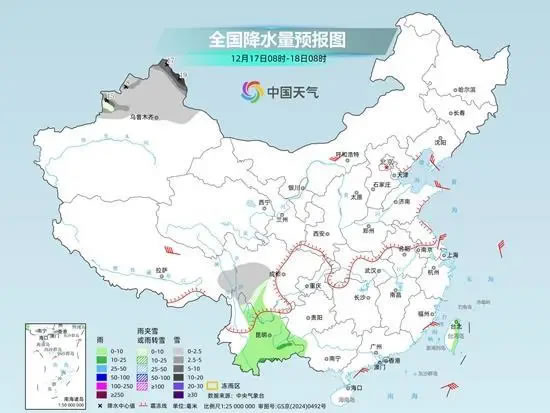 明天,內(nèi)蒙古東北部、黑龍江西北部、新疆北疆北部及南疆山區(qū)、甘肅河西等地部分地區(qū)有小到中雪或雨夾雪,其中,內(nèi)蒙古東北部、新疆沿天山地區(qū)和伊犁河谷等地部分地區(qū)有大到暴雪。云南中南部、廣西西部、廣東東南部、福建東南部、海南島、臺(tái)灣島等地部分地區(qū)有小到中雨。