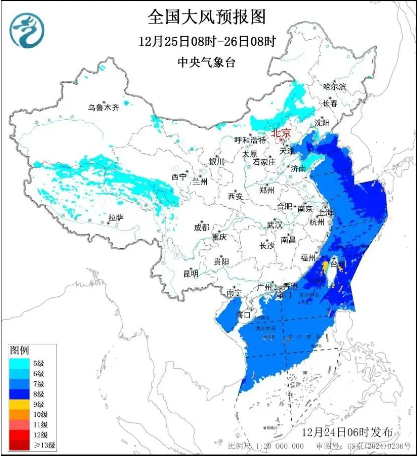 中央氣象臺(tái)今晨繼續(xù)發(fā)布大風(fēng)藍(lán)色預(yù)警:今天,西藏中西部、青海南部、內(nèi)蒙古中東部、河北北部、遼寧西部和遼東半島、山東半島等地有5~6級風(fēng),陣風(fēng)7~8級;渤海、渤海海峽、黃海、東海、臺(tái)灣海峽、臺(tái)灣以東洋面、巴士海峽、南海大部海域、北部灣將有7~8級、陣風(fēng)9~10級的大風(fēng),其中,臺(tái)灣海峽、臺(tái)灣以東洋面、巴士海峽部分海域風(fēng)力可達(dá)9級、陣風(fēng)10~11級。