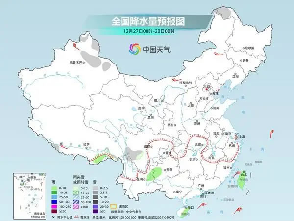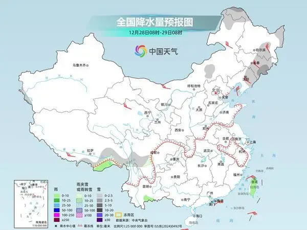 中央氣象臺預(yù)計,今天,黑龍江西北部、新疆北疆東部和沿天山地區(qū)、西藏東南部、川西高原南部等地部分地區(qū)有小雪或雨夾雪。西藏東南部、貴州西部、云南東北部、海南島東部、臺灣島等地部分地區(qū)有小雨。