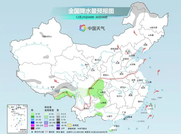 2025年12月30日至2026年1月1日,西藏東部、西北地區(qū)東部、黃淮西部、江漢西部等地部分地區(qū)將有一次明顯雨雪天氣過程,陜西、山西、河南等地部分地區(qū)雨雪混雜。雨雪天氣或影響元旦假期出行,公眾外出需關(guān)注預(yù)警預(yù)報信息,駕車出行留出安全剎車距離,謹防道路濕滑。