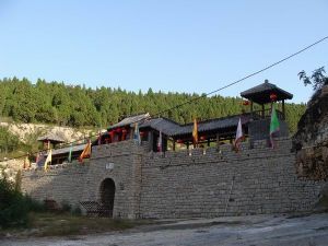 落在山勢(shì)險(xiǎn)峻,谷深崖陡、植被茂密的雄偉攔谷建筑就是“二關(guān)”,該建筑為邊關(guān)哨卡式建筑,寨墻和大門為全石結(jié)構(gòu),因?yàn)槭墉h(huán)境、條件限制,北宋時(shí)期義軍用干碴砌壘,占地面積200多平方米,長(zhǎng)40余米,高8米,寬3.5米,該建筑卡谷而立森嚴(yán)壁壘,旗掩霸寨,由插翅虎雷橫把守。