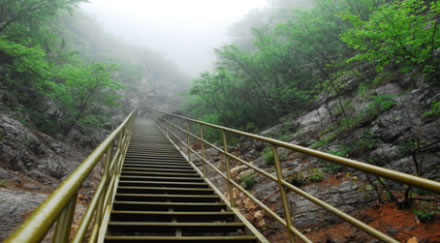 位于旅游南線(xiàn),從下到上,一共有488級(jí)階梯,上下直線(xiàn)距離近兩百米,是連接南線(xiàn)進(jìn)入景區(qū)絕佳景觀(guān)的必經(jīng)之路,直上直下,有“平步青云”的寓意。