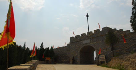 位于旅游北線(xiàn),根據(jù)唐賽兒起義的資料修建的石質(zhì)城門(mén)建筑,是唐三寨古寨的西寨口,也是進(jìn)入北、東、南三處山寨的重要入口,所以又叫“三寨關(guān)”。
