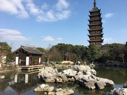 從東大門進(jìn)園,首先看到竹林和竹林上露出的塔尖,頗引人入勝。這批竹園是在舊時私人住宅的小竹園基礎(chǔ)上擴(kuò)建而成。
