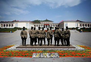 組雕于2009年9月26日落成,反映了抗戰(zhàn)時(shí)期朱德、彭德懷、葉劍英、林彪、聶榮臻、羅榮桓、劉伯承、徐向前、賀龍、鄧小平、左權(quán)共11位八路軍將領(lǐng)的形象,由清華大學(xué)美術(shù)學(xué)院教授,雕塑家李象群設(shè)計(jì)制作,長(zhǎng)10m、寬3.5m、高3.8m。截止2009年是國(guó)內(nèi)展示人物最多、體量最大的領(lǐng)袖群雕。