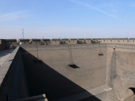 康熙四十三年(1703年)因皇帝西巡路經(jīng)平遙,而筑了四面大城樓,使城池更加壯觀。平遙城墻總周長6163米,墻高約12米,把面積約2.25平方公里的平遙縣城一隔為兩個風(fēng)格迥異的世界。