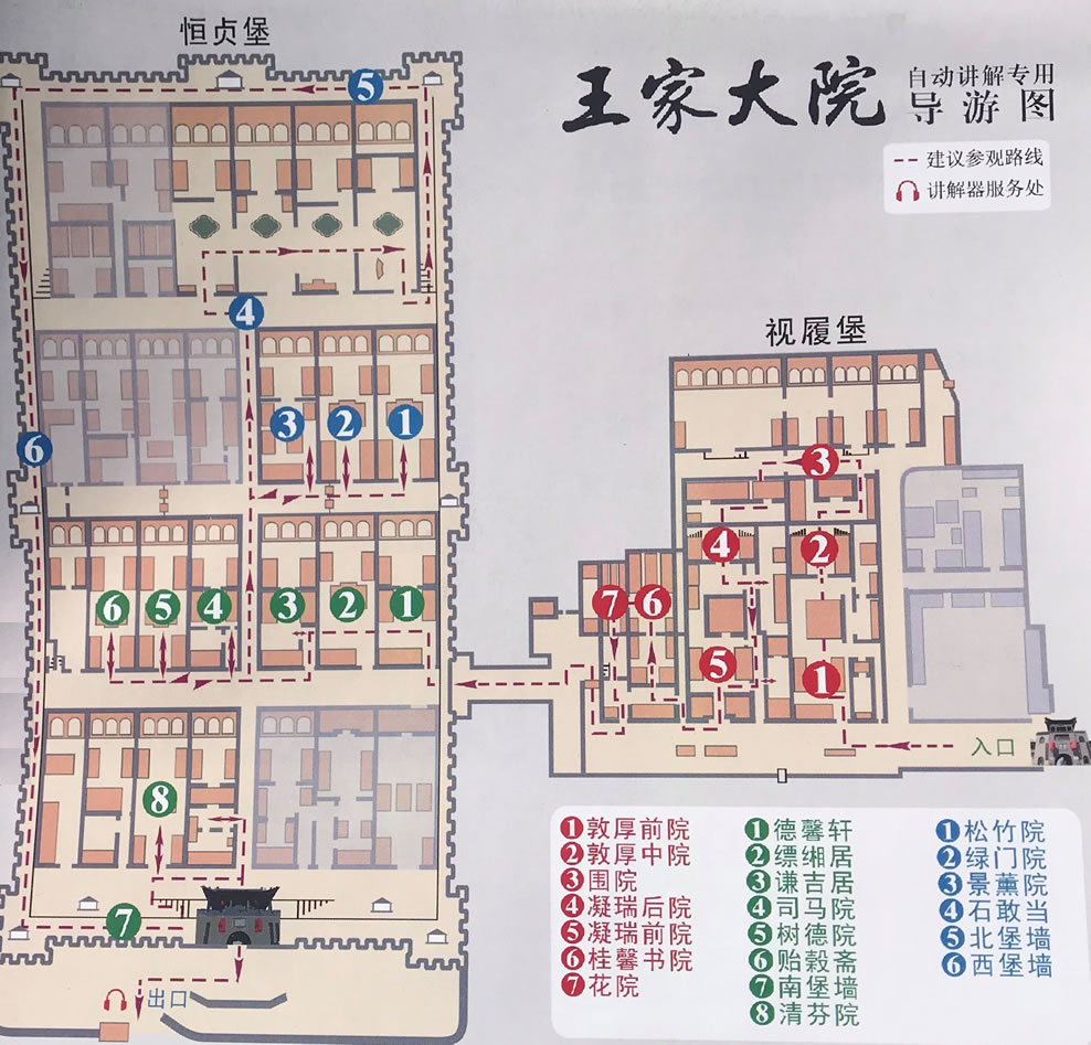 紅門(mén)堡建筑群,是堡,又似城,依山而建。從低到高分四層院落排列,左右對(duì)稱,中間一條主干道,形成一個(gè)很規(guī)整的“王”字造型。同時(shí)隱含“龍”的造型。堡內(nèi)88座院落各具特色,無(wú)一雷同。