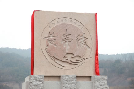 位于黃帝陵印池廣場前,于2017年3月16日落成。標(biāo)識碑正面雕刻的黃帝陵標(biāo)識,圓形背景源自中華文化“天圓”的傳統(tǒng)理念,虛實(shí)相間體現(xiàn)時空轉(zhuǎn)換,圓形下方的大地和如意祥云圖案,寓意黃帝開創(chuàng)的中華文明根植厚土、造福華夏。