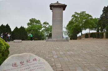 無字碑北靠東闕,南依翁仲,西與述圣紀(jì)碑相對,巍峨壯觀,雕刻精美,為歷代群碑之冠。