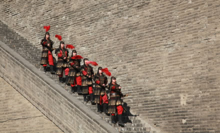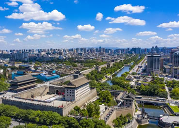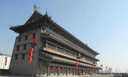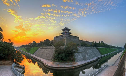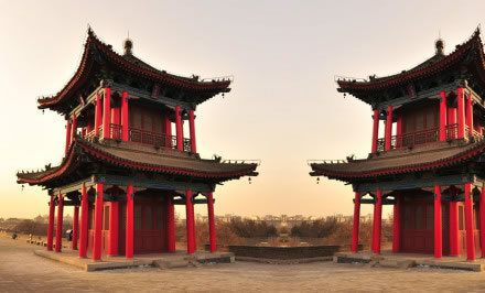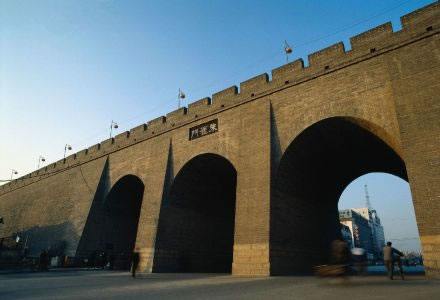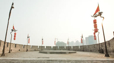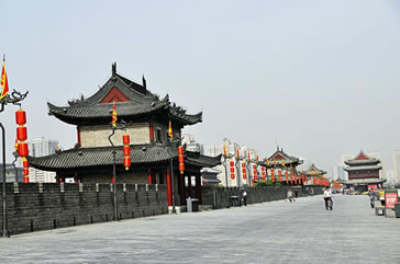 雄偉壯觀的西安城墻已成為市區(qū)最吸引人的觀光勝地之一。沿城墻外側(cè)已建成“環(huán)城公園”,成為城市居民晨練的絕佳活動場所。 |