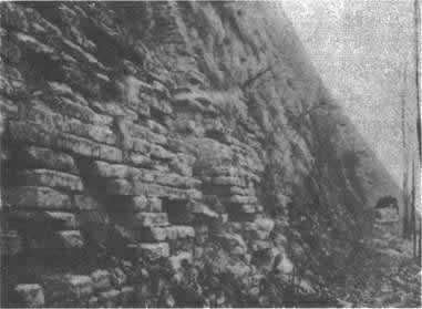 明西安城墻上的垛墻成“品”字形,垛墻中部都留有一個高寬九寸(約合0.29米)、外方內(nèi)圓的懸眼,作瞭望、射擊之用。垛墻腳下也留懸眼,專供佛郎機(jī)炮(明仿葡萄牙人制造的火炮)、火銃射擊使用。在垛墻的頂部和垛口施“山”字形的封頂轉(zhuǎn),以防御攀援之?dāng)车娘w鉤和搭梯。但這種“品”字形中留懸眼的垛墻,不夠牢固,易為攻城敵人拉塌。