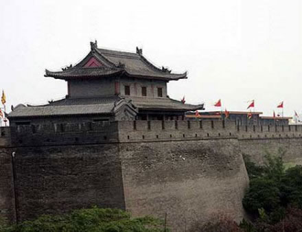 明崇禎九年(1636年),陜西巡撫孫傳庭修了四關(guān)土城墻。有四個城門:東為長樂門,西為安定門,南為永寧門,北為安遠(yuǎn)門。每門門樓有三重:閘樓、箭樓、正樓。閘樓在外,箭樓在中,正樓在里,箭樓與正樓之間的圍墻為甕城。整個城墻構(gòu)成一個嚴(yán)密的防御體系,城外有寬闊的護(hù)城河。