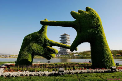 西安世博園長安園以綠色,生態(tài),中國風(fēng)的“新概念詮釋”為主題,包括航天植物及航天科普教育展示區(qū),竹文化展示區(qū),藥草文化展示區(qū),文化水岸展示區(qū),牡丹芍藥展示區(qū);竹文化展示區(qū)將詮釋中國風(fēng)的新概念。運(yùn)用中國傳統(tǒng)的竹編織出景區(qū)大門,雕塑,竹廊,竹棧道,竹舍,茶室等具有中國韻味的景觀元素。