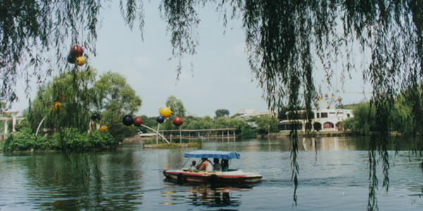 怡湖園:位于成都市北郊青白江新建成綿高速公路旁的怡湖公園,距離成都市區(qū)約30公里,占地約213畝,其中湖面積約70畝。該園于1986年由青白江區(qū)建委動(dòng)工興建,短短兩年多時(shí)間建成,于1988年正式對(duì)外開放。怡湖公園屬于現(xiàn)代化的大型綜合公園,該園以其強(qiáng)烈的現(xiàn)代化氣息的城市園林風(fēng)格建筑和異域情調(diào)吸引了成千上萬(wàn)的中外游客,上海學(xué)林出版社曾將該園編入面向國(guó)內(nèi)外發(fā)行的《中國(guó)旅游名勝》畫冊(cè)。該園大門,設(shè)計(jì)精巧,造型獨(dú)特,雅致舒暢,極富象征意義。