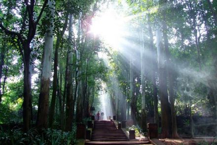 九龍山森林公園位于四川省西南部,眉山市丹棱縣楊場鎮(zhèn)境內,距丹棱縣城約20千米。面積380公頃,其中核心景區(qū)100公頃,山中年降雨量1130毫米,年平均氣溫18.5℃,森林覆蓋率高達86%,享有“天然氧吧”、“水上迷宮”的美譽。九龍山的主峰龍脊山海拔僅468米。2003年5月九龍山被命名為“省級森林公園”。