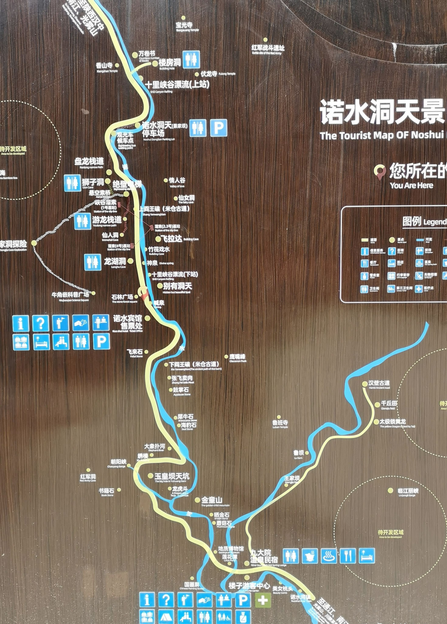 諾水河風景名勝區(qū)內金童山至中峰洞為腹心地帶,沿河兩岸奇峰突兀,峭壁如削,頗有桂林景致、三峽險趣,其間地下溶洞密布,洞洞相連,洞中有洞,已初步探明景區(qū)溶洞128個。