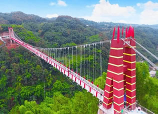 七洞溝9D云海玻璃橋橫騎南屏山山脈與佛來山山脈峽谷之上,全長(zhǎng)386米,寬3.3米,垂直落差188米,在中國西南部地區(qū)長(zhǎng)、寬、高都名列第一,是長(zhǎng)寧旅游大發(fā)展靚麗新畫卷之一。玻璃橋采用最新9D技術(shù),以仿真場(chǎng)景與感應(yīng)設(shè)置模擬多種特殊效果、立體畫面,將視覺、聽覺、觸覺和動(dòng)感完美地融為一體,給游客帶來驚心動(dòng)魄的刺激感受。走在橋上,不僅可以俯瞰綿溪河,還可以飽覽南屏山脈、佛來山脈等2座群山的英姿;晴天時(shí),藍(lán)天和白云的倒影鋪滿天橋,讓人在對(duì)透明的腳下戰(zhàn)戰(zhàn)兢兢之余,更樂享于踏云而行的快感;而云霧天氣時(shí),玻璃橋則在霧中若隱若現(xiàn),天上人間的美景更是讓人驚嘆不已。