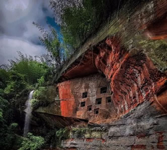 七個(gè)洞崖墓群位于綿溪河?xùn)|岸的紅色砂巖峭壁上,開鑿于約2000年前的東漢。過去,當(dāng)?shù)厝税哑邆(gè)洞稱為“蠻子洞”,認(rèn)為是古時(shí)候蠻夷的住所,后來,經(jīng)考古專家考證為東漢時(shí)期的崖墓群。崖墓的特點(diǎn)就是利用山崖開鑿墓室,從東漢時(shí)期開始至之后的約500年間,崖墓是四川,特別是川南長(zhǎng)江及其支流兩岸地區(qū)典型的一種墓葬方式,在整個(gè)中國都非常具有代表性。