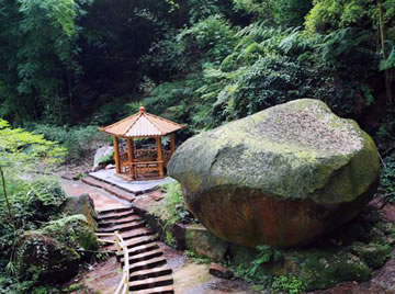 周洪謨以文起家,歷任翰林院侍讀學(xué)士、國子監(jiān)祭酒、禮部右侍郎、左侍郎、禮部尚書,后加任加封太子少保、資政大夫,謚號(hào)“文安”,為官46年,歷經(jīng)正統(tǒng)、景泰、天順、成化、弘治5朝4帝,經(jīng)歷土木堡之變、京師保衛(wèi)戰(zhàn)和奪門之變;他被明憲宗朱見深稱為“為國名儒”,贊揚(yáng)他“貫通經(jīng)史,識(shí)達(dá)天文,具忠愛之誠,啟沃兩京,傳我文明”;晚年退休后參與創(chuàng)建了翠屏?xí)海ń褚速e市一中),洪謨以儒名世,一生著述甚豐,其中“峨眉天下秀”這句享譽(yù)世界的形象口號(hào),就來自周洪謨的《眉山天下秀》。后人爭(zhēng)相效仿,希望把孩子培養(yǎng)成周洪謨這樣造福桑梓的有用之人,也經(jīng)常把孩子帶到這里學(xué)習(xí)了解漢學(xué)知識(shí)。為了紀(jì)念這些事兒,人們就把這條溝命名為洪謨溝。沿洪謨溝溪流而上,修建了全長(zhǎng)720米環(huán)形游覽步道,沿著步道可以欣賞洪謨齋、洪謨墨、洪謨硯等天然丹霞景觀和億年前白堊紀(jì)時(shí)代的海洋遺跡。
