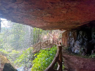 七洞溝古稱虎跳巖、飛泉峽,景區(qū)位于長(zhǎng)壽之鄉(xiāng)、中國十佳生態(tài)養(yǎng)生旅游名縣、2019中國最美縣域——長(zhǎng)寧縣境內(nèi),距成貴高鐵長(zhǎng)寧站12公里,為典型丹霞峽谷地貌,森林覆蓋率高達(dá)96%,桫欏群落成片,每立方厘米負(fù)氧離子含量高達(dá)4.7萬個(gè),高居四川第一,夏季氣溫比宜賓市區(qū)低近10度,是著名避暑勝地和天然氧吧。