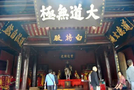 風(fēng)洞樓下是白特殿!疤亍笔潜锐R還能跑的動(dòng)物,它馬頭、驢身、騾尾、牛蹄,俗稱“四不像”,古人說(shuō)“千里馬、萬(wàn)里特”。傳說(shuō)文昌帝君的坐騎就是全身色白的特,即“白特”,明代著名小說(shuō)家馮夢(mèng)龍?jiān)珜?xiě)對(duì)聯(lián):“梓潼帝君乘白特下臨凡界,三清老子騎青牛西出函關(guān)”。這座殿堂就因白特而得名。