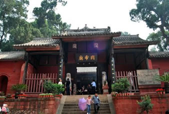 在魁星樓北面,還有頗具氣勢(shì)的關(guān)帝廟。七曲山關(guān)帝廟由皋門、拜殿、關(guān)圣殿組成。關(guān)圣殿仍保留明代的建筑特色,皋門、拜殿為清代乾隆時(shí)所修,整個(gè)古建給人以古樸典雅、雄偉壯麗的感覺(jué)。在關(guān)圣殿前有高大木門六道,門上有四幅文昌帝君畫(huà)像,繪有文昌帝君及擎著官扇、手托冠冕的侍從。圖中藍(lán)天映襯著白云,溪流漂過(guò),鳥(niǎo)語(yǔ)花香,梅花鹿顧盼左右,整幅圖案隱喻著“有祿”、“加官”的美好祝愿。清華大學(xué)教授黛妲評(píng)價(jià)說(shuō),這四幅明代門畫(huà),線條圓潤(rùn)渾厚,具有很高的工藝水平。