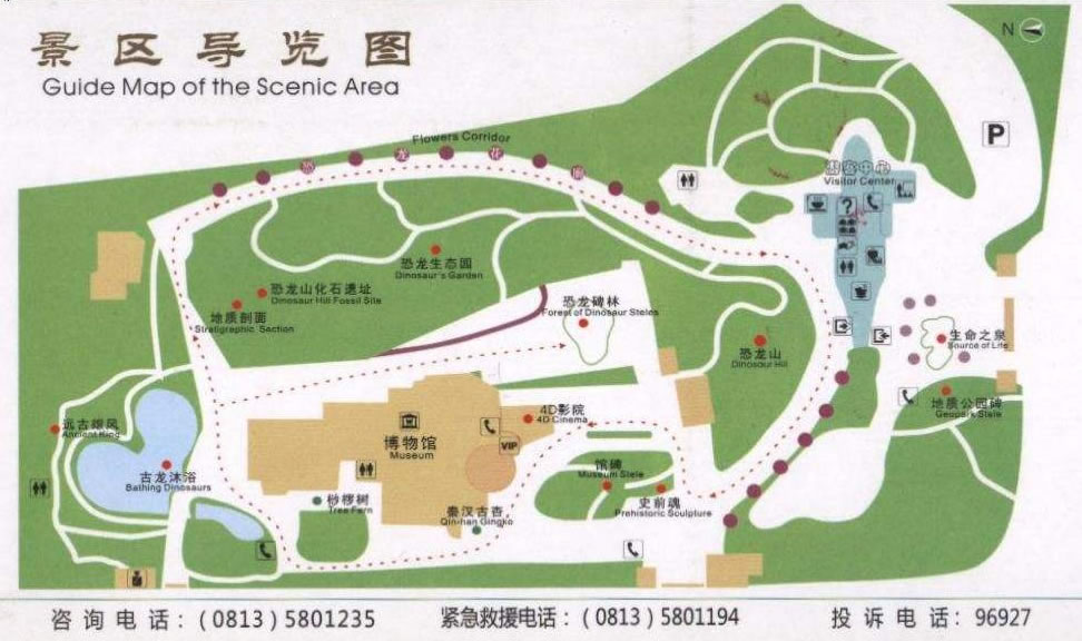 7.景致優(yōu)美。恐龍博物館主館造型獨(dú)特,猶如一堆巨石兀立在恐龍化石群產(chǎn)出地上。游客中心則似一具巨大的劍龍橫臥在洪荒古樸的亞熱帶叢林之中,二者交相輝映,相得益彰。園區(qū)內(nèi)有大量的鐵樹、銀杏、松柏等中生代植物,特別是移植了30余株與恐龍同時(shí)代有“活化石”之稱的植物——桫欏,充分地營(yíng)造了恐龍生活的史前環(huán)境。整個(gè)園區(qū)環(huán)境優(yōu)美,風(fēng)景宜人,是一個(gè)旅游、休閑的絕佳場(chǎng)所。