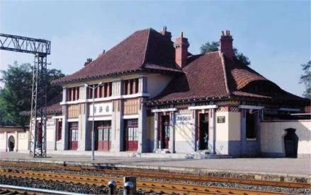 靜海站,始建于1908年,為日耳曼風(fēng)格,方向正東,結(jié)構(gòu)為德式馬尾柁架建筑,面闊6間,四面均有門窗,建筑面積655平方米。正面候車處有三扇大門,中間外墻上寫有“靜海站”三個大字,每扇門窗兩側(cè)均有磚砌方柱,上有磚拼造型,兩側(cè)房檐下內(nèi)外均有磚砌菱形圖案。