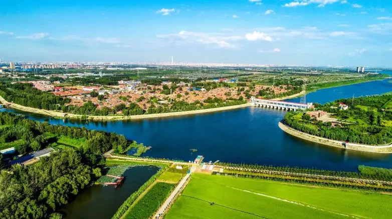 西青區(qū)地處海河流域下游,境內(nèi)自然河流與人工河流縱橫交織,坑塘洼淀密布。全區(qū)有一級(jí)河道3條,即中亭河、子牙河、獨(dú)流減河;二級(jí)河道10條,其中用水河5條,排水河4條,排污河l條。用水河道大多呈東西向,排水河道一般呈南北向。在津港運(yùn)河?xùn)|側(cè)、大沽排污河南側(cè),有1座區(qū)內(nèi)最大的蓄水?dāng)r洪水庫(kù)——鴨淀水庫(kù),蓄水面積7平方公里,庫(kù)容量3450萬(wàn)立方米,加上眾多的灌排大渠,形成西青區(qū)河網(wǎng)稠密、縱橫交錯(cuò)的北國(guó)水鄉(xiāng)景觀。