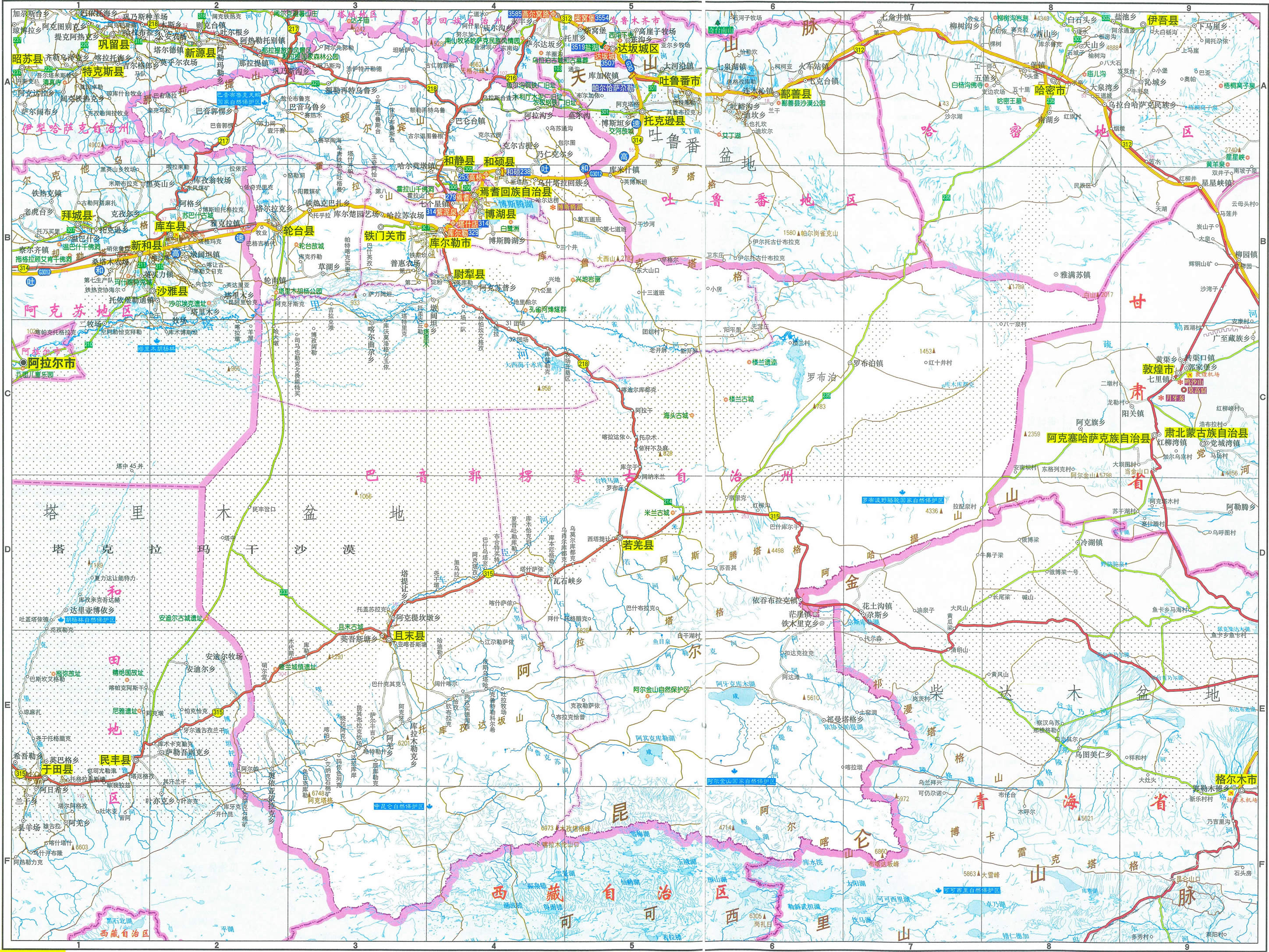 巴音郭楞蒙古自治州交通便捷,新疆有7條省道、國道,其中有5條穿越巴州境內(nèi),呈“三橫兩縱”狀態(tài)貫穿巴州。