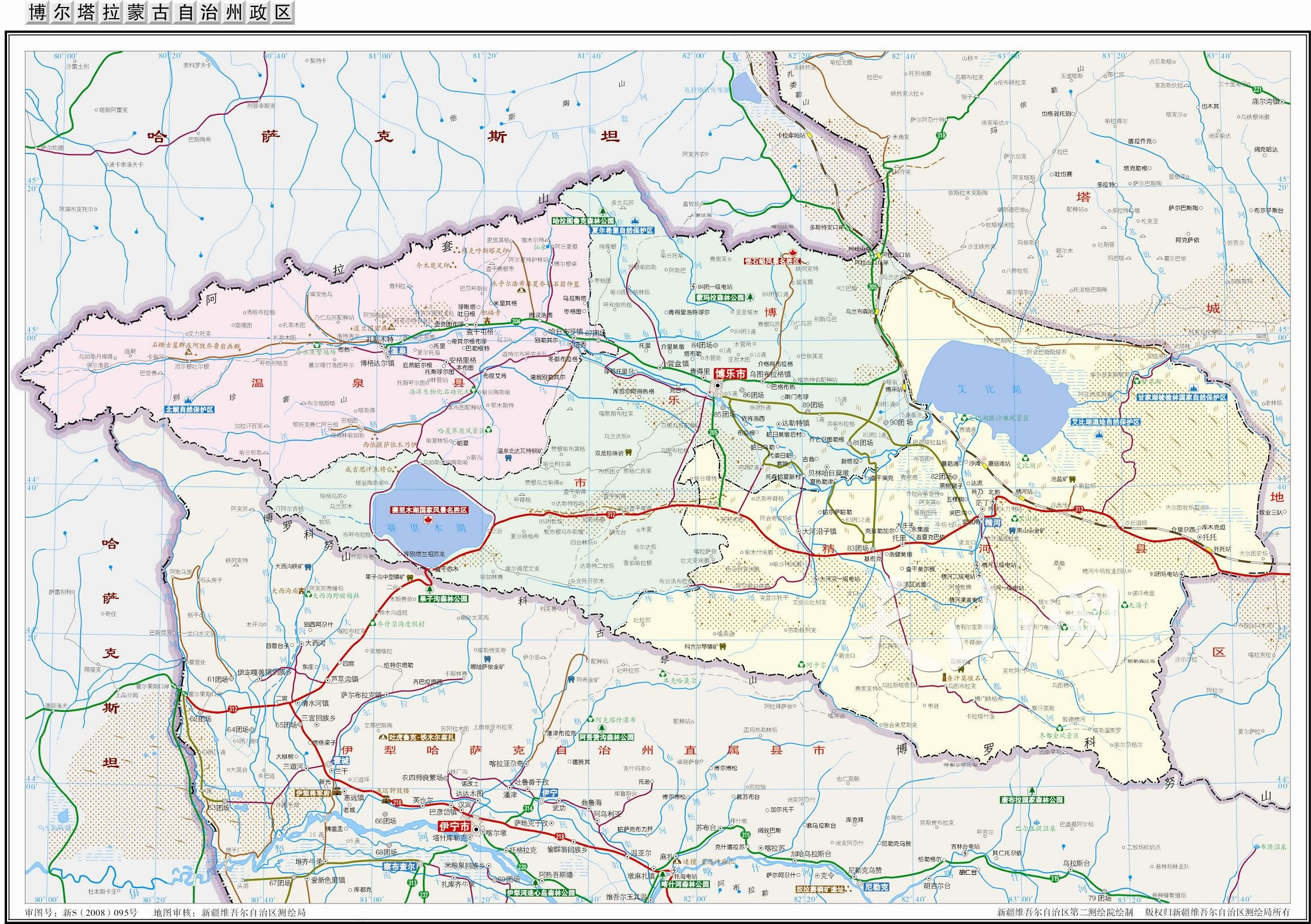 博爾塔拉蒙古自治州轄2個(gè)縣級(jí)市、2個(gè)縣: