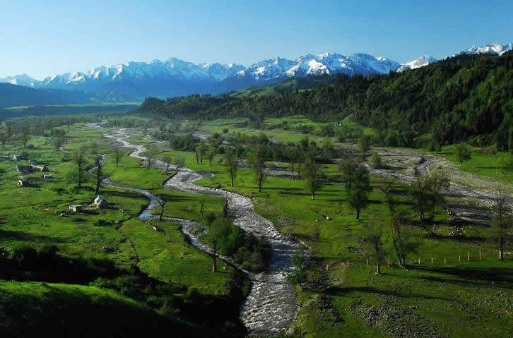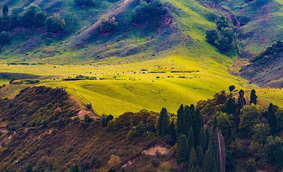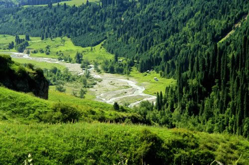 伊犁的草原風景區(qū)都是處在東西走向的河谷地帶,唯獨伊犁鞏留縣東部山區(qū)的庫爾德寧是在一條南北走向的山間闊谷,長約14公里,最寬處約1公里,谷底平均海拔1500米,庫爾德寧便是哈薩克語“橫溝”的意思。特殊的南北走向,使得庫爾德寧冬暖夏涼,四季氣候宜人,所以庫爾德寧既是伊犁著名的風景區(qū),又是旅游避暑的勝地,兼具江南山鄉(xiāng)的嫵媚清秀和草原景色的博大粗獷,吸引著越來越多的國內外游客。她的絕色天姿和超凡脫俗的自然景觀令人嘆為觀止,使人無限向往。