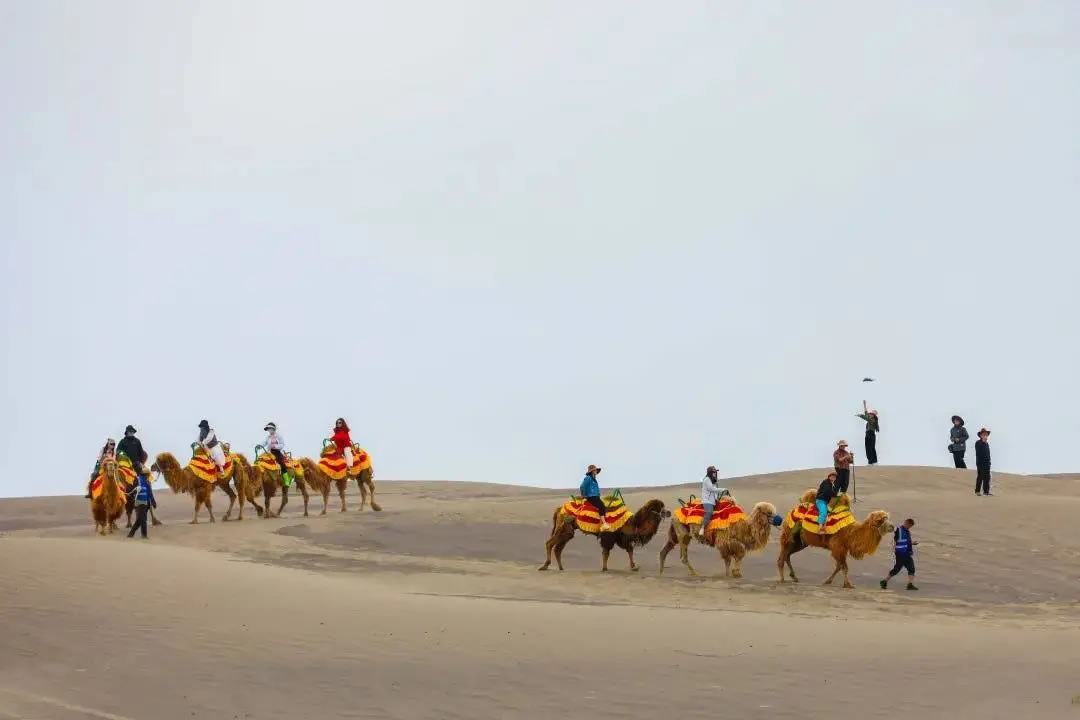 游客在木特塔爾沙漠體驗駱駝騎行 (馬海玲 攝)