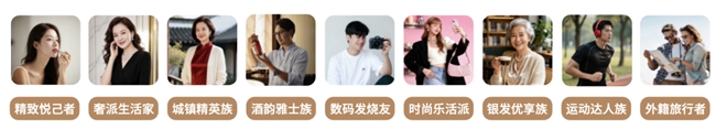 6.消費人群重構(gòu),從“規(guī)模擴張”到“圈層精耕”。 根據(jù)消費貢獻、品類偏好、年齡、地域等維度,中免集團核心客群可劃分為九個類別,他們精準覆蓋多元消費需求:31-45 歲一二線 “精致悅己者” 主打高端護膚,高凈值 “奢派生活家” 偏愛腕表珠寶,三四線 “城鎮(zhèn)精英” 務(wù)實追品質(zhì),31-50 歲男性 “酒韻雅士” 熱衷高端酒飲,21-35 歲 “數(shù)碼發(fā)燒友” 聚焦科技產(chǎn)品,16-30 歲 Z 世代 “時尚樂活派” 追彩妝潮流,60+“銀發(fā)優(yōu)享族” 重健康消費,26-45 歲 “運動達人” 選專業(yè)裝備,外籍旅行者青睞中國特色商品。各類人群消費偏好鮮明,為消費升級與圈層精耕注入活力。