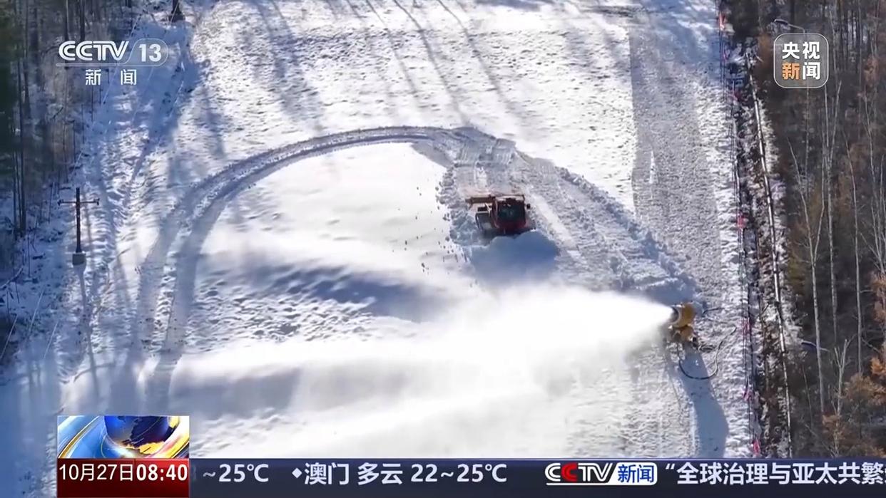 在漠河市北極村,滑雪場也已進(jìn)入開滑前的沖刺階段,造雪機(jī)、壓雪車24小時不間斷作業(yè),預(yù)計下周就能開板。