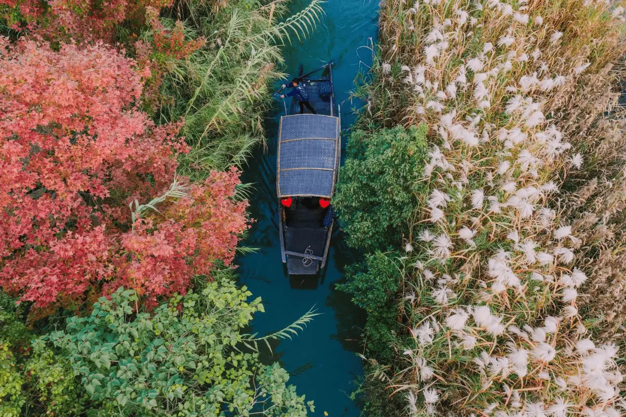 秋日的常熟沙家浜國家濕地公園,蘆葦蕩褪去青翠,換上了金棕色,白鷺掠過波光粼粼的湖面,幾條游船靜靜穿行在蘆葦迷宮中,船頭游客相機(jī)的咔嚓聲,交織成對這片“綠水青山”的贊美。