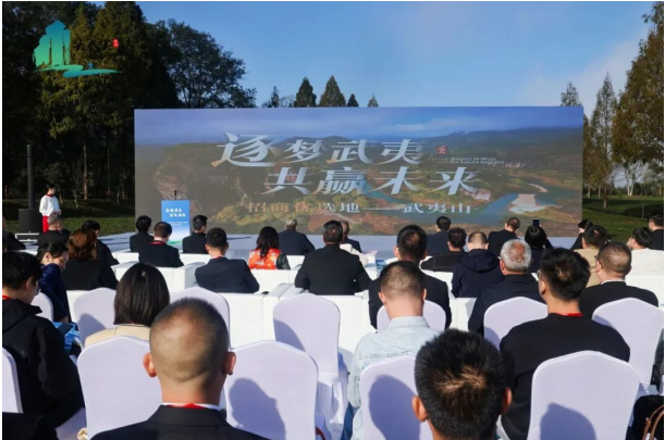 武夷山市政協(xié)黨組書記、主席裴福海先生開場(chǎng)致辭。他指出武夷山作為"三世遺"疊加、"兩公園"輝映的寶地,具有發(fā)展茶文旅產(chǎn)業(yè)的獨(dú)特優(yōu)勢(shì)。武夷山市將全力支持茶足徑、世界紅茶小鎮(zhèn)及萬里茶道起點(diǎn)小鎮(zhèn)項(xiàng)目建設(shè),持續(xù)優(yōu)化營商環(huán)境,為來武投資企業(yè)提供全方位服務(wù)保障。
