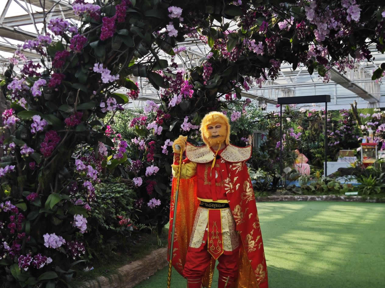 年輕群體則偏愛沉浸式互動與休閑消費,園區(qū)針對這一需求持續(xù)更新體驗內容:古典舞樂演出增設互動環(huán)節(jié),游客可即興參與;闖關游戲融入蘭花知識,兼具趣味與科普;NPC互動劇情不斷擴展,身著漢服的角色穿梭于花廊之間,帶領游客解謎打卡;漢服攝影區(qū)提供多樣妝造與場景,成為年輕人拍照分享的熱門選擇。