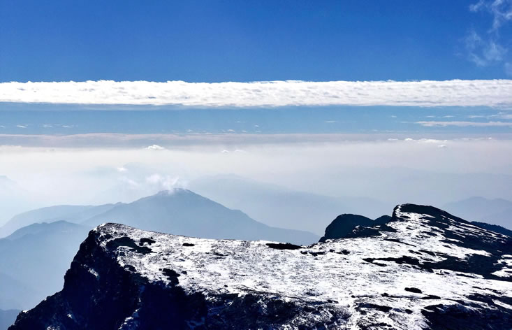 毛澤東同志“烏蒙磅礴走泥丸”的詩(shī)詞就是對(duì)烏蒙山的最好寫照。大牯牛寨山是烏蒙山脈最高峰,氣勢(shì)逼人,此山距東川城區(qū)水平距離僅9千米,海拔高差卻達(dá)2767.3米。山上巖石大都為堅(jiān)硬的石灰?guī)r,呈褐色。